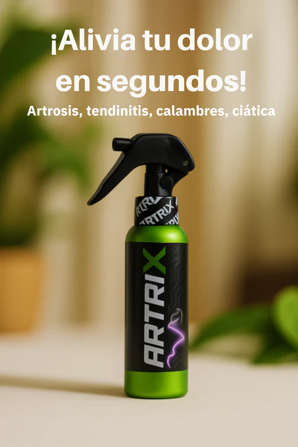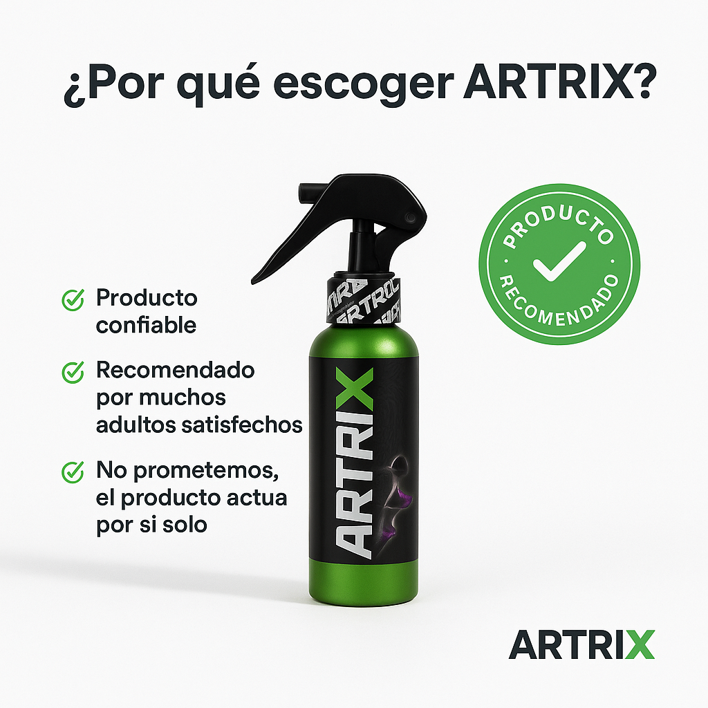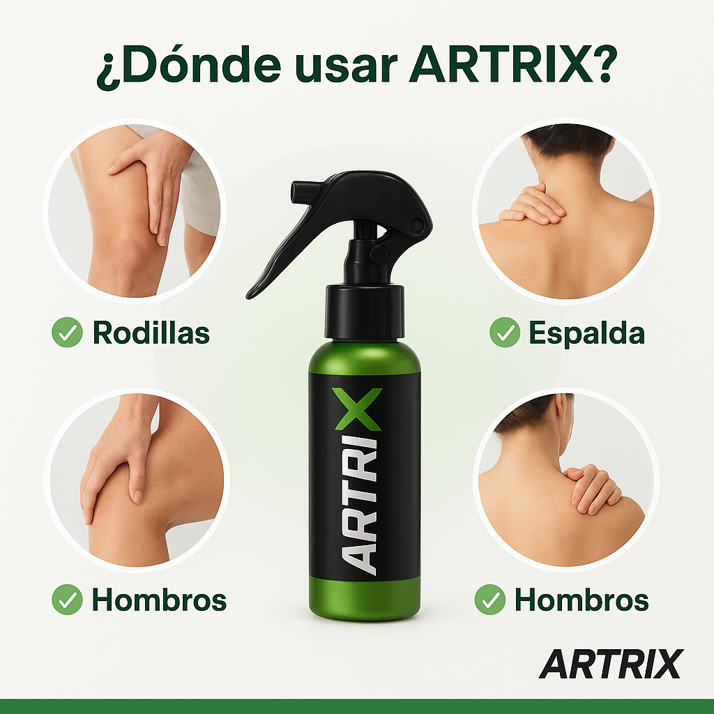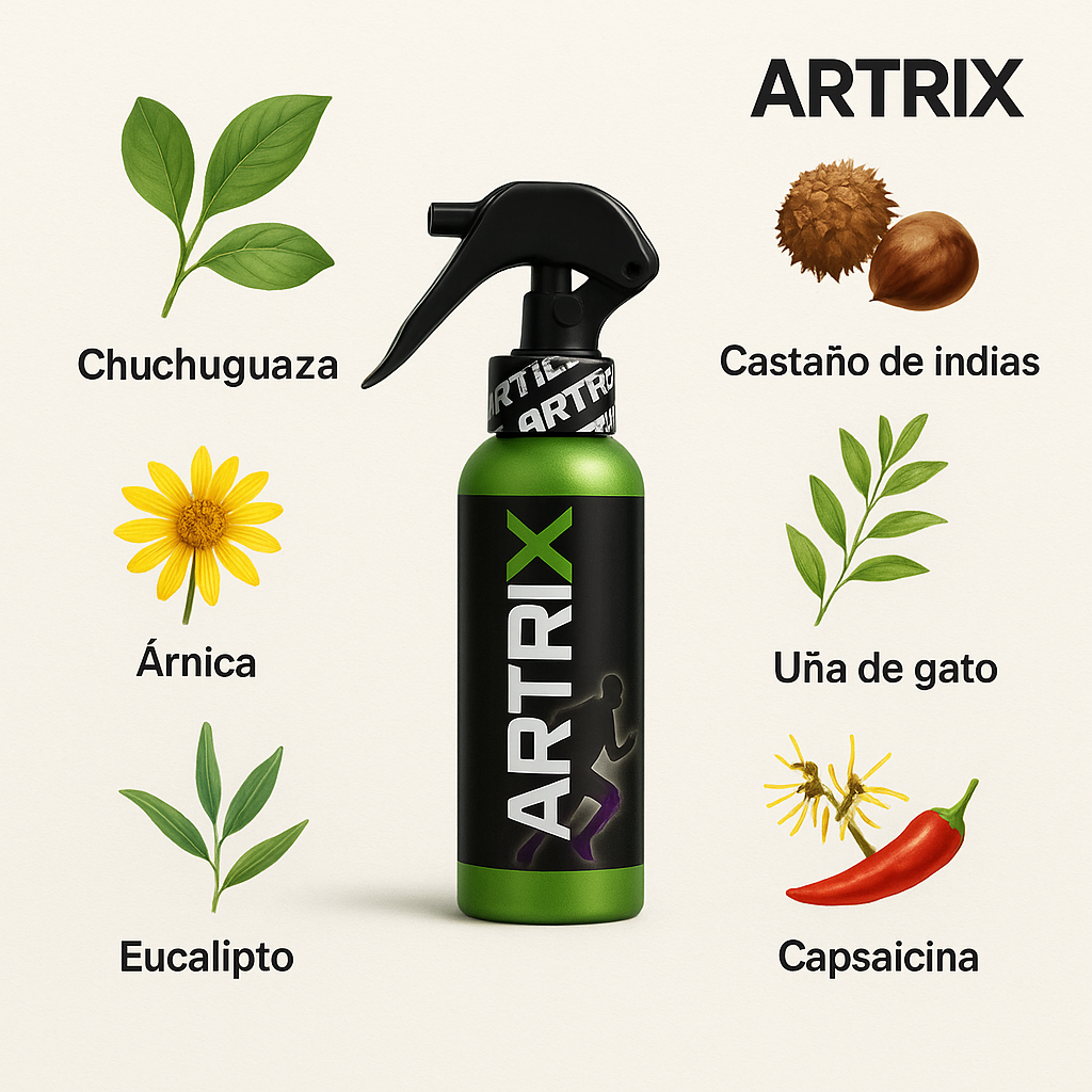 “ARTRIX" es un spray relajante muscular de rápida absorción, formulado con extractos naturales y capsaicina, que alivia de inmediato el dolor articular y muscular.